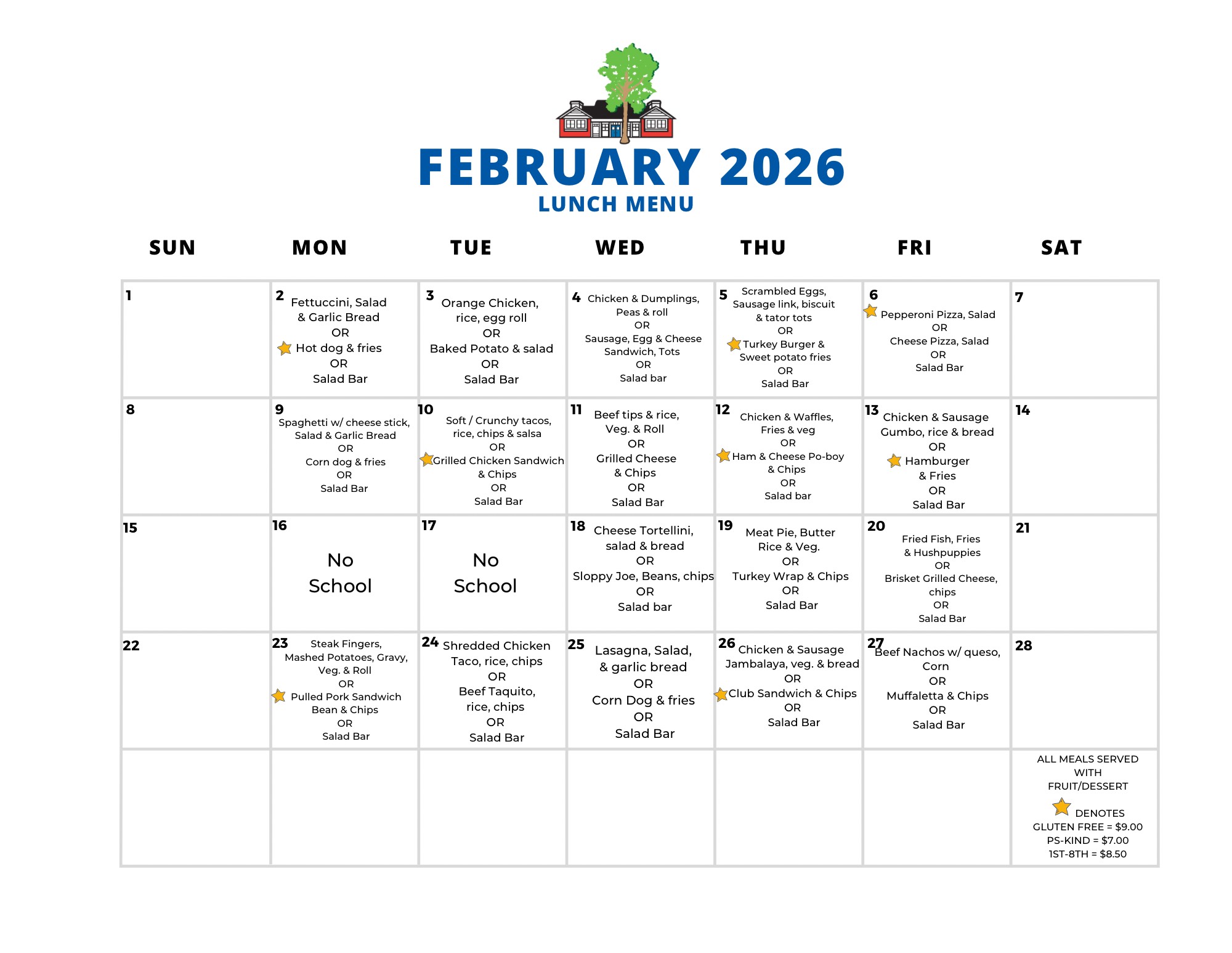 February 2026 Lunch Menu